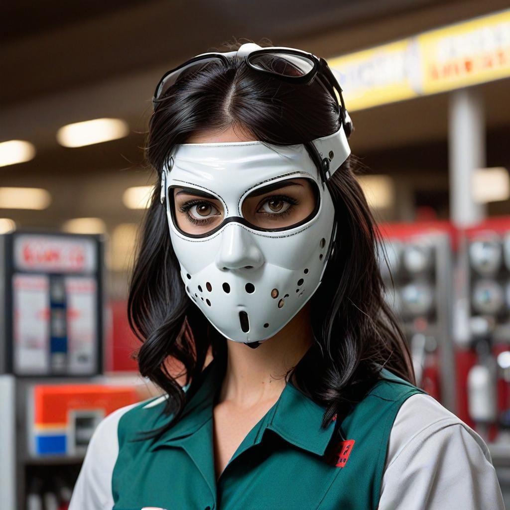 Our one-eyed polar bear mascot had received Bob’s latest artistic treatment – he had transformed it into what he called “Horror Movie Bear,” though it was clearly just Jason Voorhees, complete with a hockey mask made from a cut-up milk jug and a wooden machete that Bob had whittled himself from a broken broom handle. The bear had lost its right eye just a few weeks ago in what everyone referred to as “the installation incident,” a catastrophic attempt to mount the bear above the entrance, directly over the faded Marty’s Quikmart sign that was still partially visible beneath our neon Chill n’Fill logo. Bob’s insistence that the bear could be installed without professional help had resulted in a dramatic crash, a shower of plaster, and one fewer eye in our ursine mascot’s already unsettling face. Bob, ever the optimist, insisted the bear now had “character” and started calling it “the winking one-eyed polar bear,” though there was no actual wink—just an empty socket where the plastic eye used to be. Around its neck hung the usual small chalkboard, today reading: “SLASH YOUR HUNGER WITH OUR KILLER DEALS!” – a slogan Bob had workshopped for three days before settling on, rejecting alternatives like “CH-CH-CH SNACK-SNACK-SNACK” and “YOUR WALLET WON’T BE THE ONLY THING THAT’S MURDERED!”