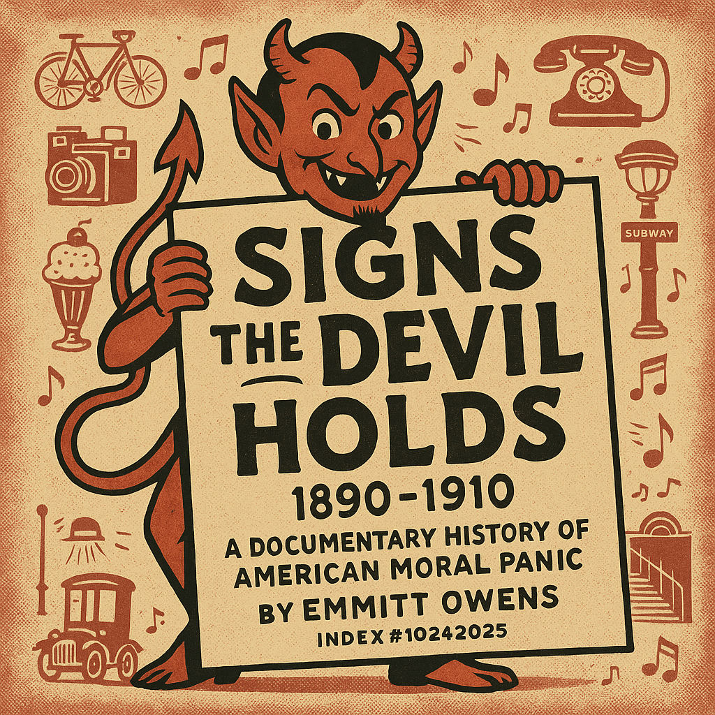 Between 1890 and 1910, Americans identified at least ten distinct signs of Satan’s work on Earth: electricity, women on bicycles, portable cameras, ice cream sodas, telephones, automobiles, penny dreadfuls and dime novels, “white slavery,” ragtime music, and the waltz.