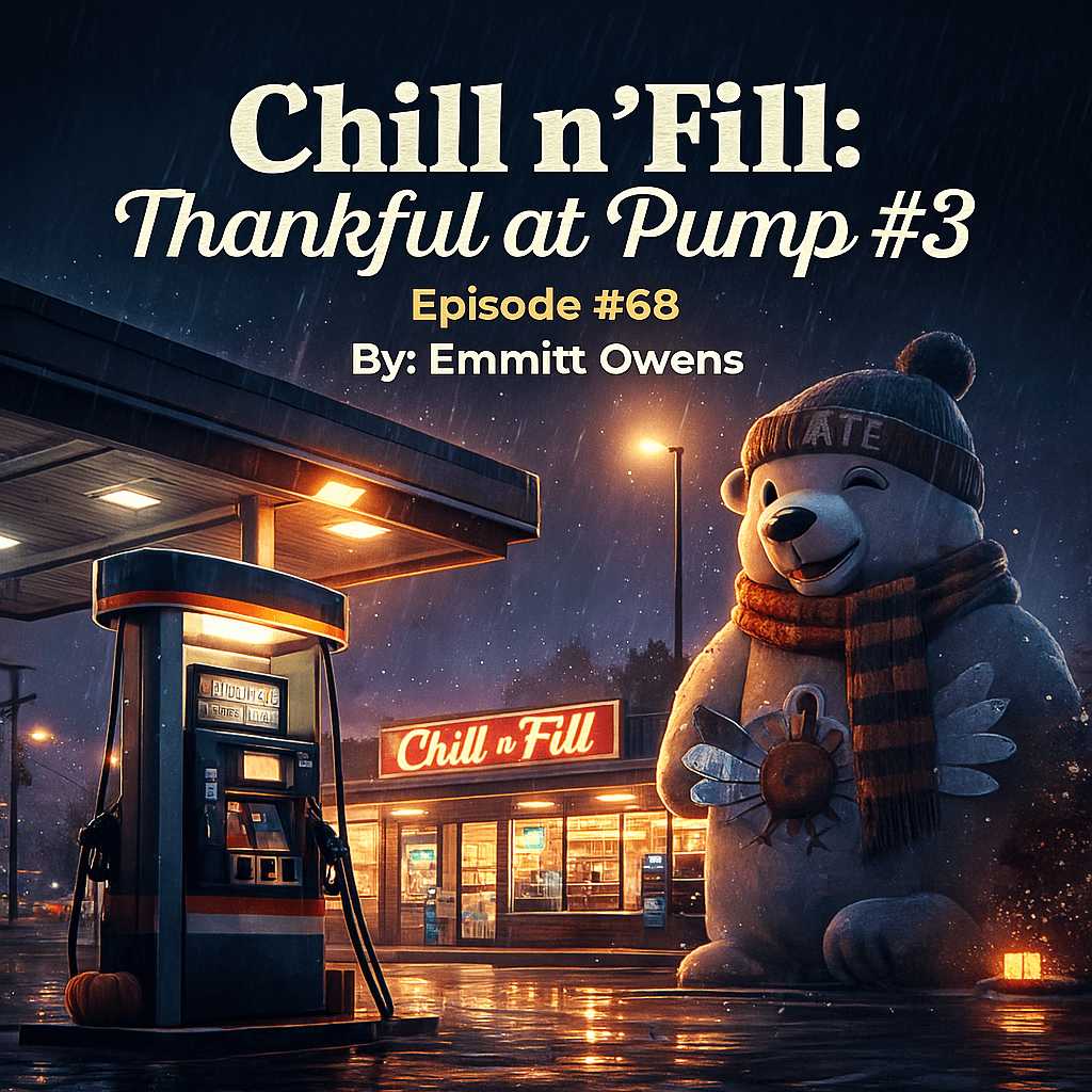 Another night at Chill n’Fill. Another holiday that didn’t look anything like the commercials. Another reminder that not everybody gets a perfect table—but sometimes, if you’re lucky, you get a plastic stool, a warm slice of pie from a stranger, and a gas pump that caught all the people who didn’t have anywhere else to land.